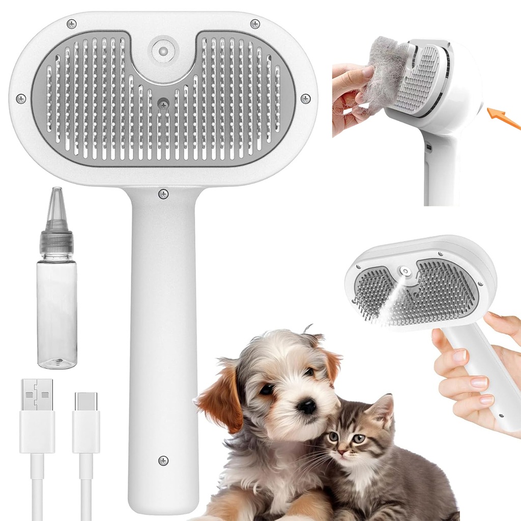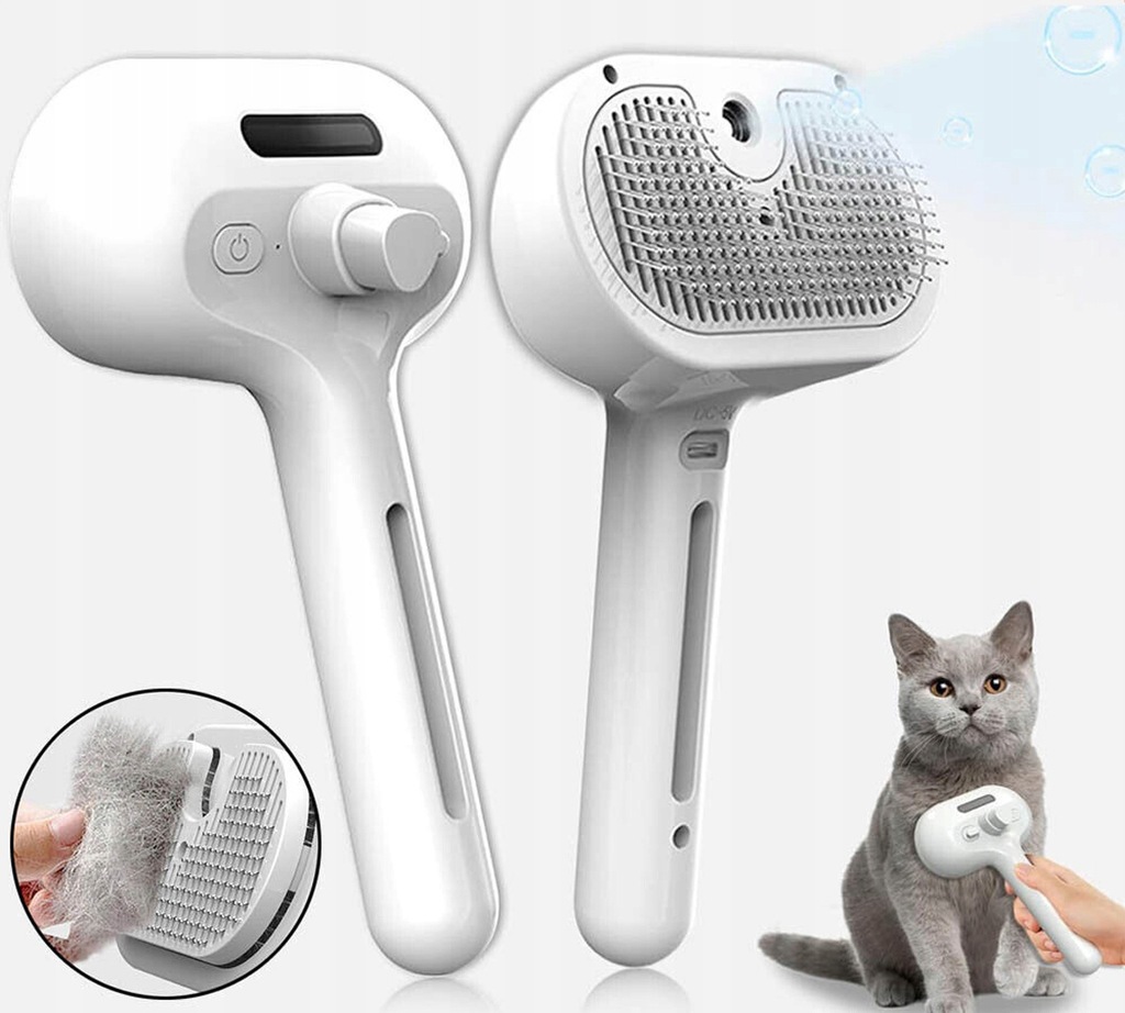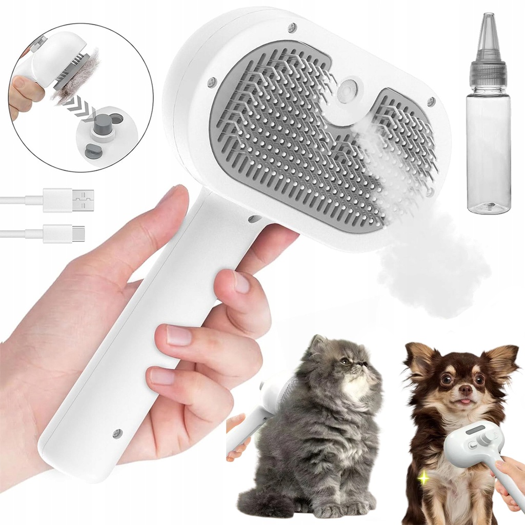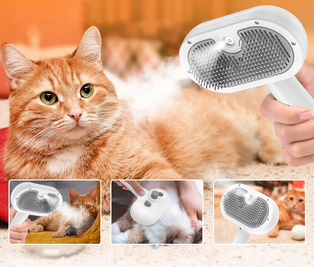 Szczotka Parowa 3w1 Premium: Elektryczna do Pielęgnacji Sierści Psa i Kota (Masaż, Usuwanie Włosów, Odświeżanie)
