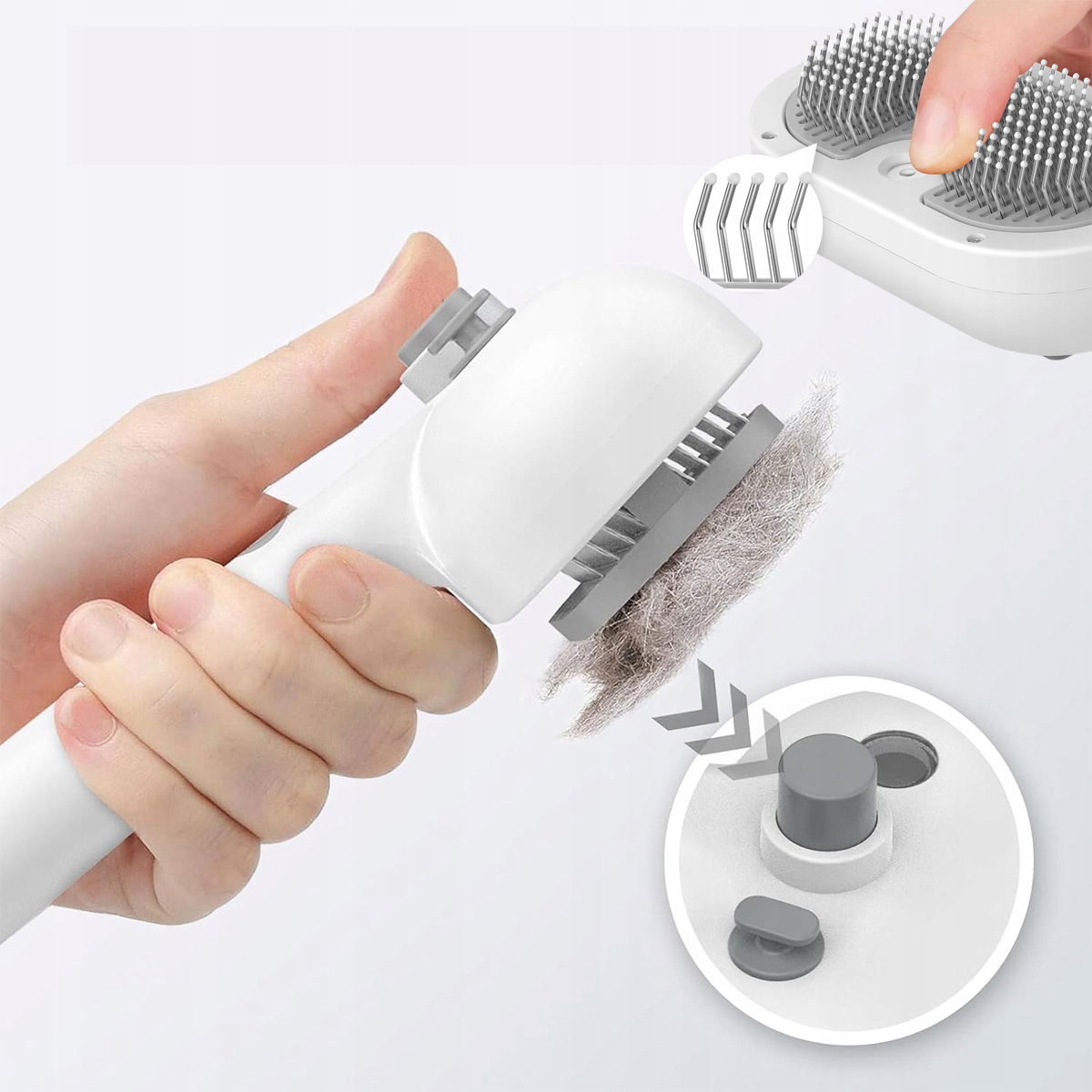 • 3w1: Czyszczenie, masaż i usuwanie luźnej sierści za pomocą jednego urządzenia.